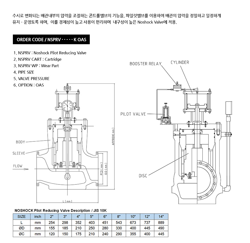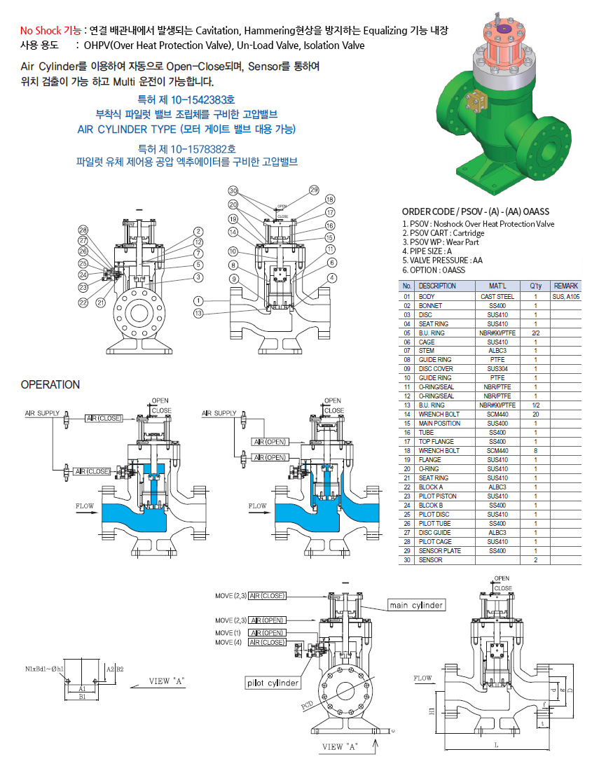 배관내 흐르는 유체를 차단하는 Shut-off Valve가 Open 상태에서 Close를 하거나 Close 상태에서 Open 동작을 할때 순간적으로 Valve를 차단 또는 개방을 함으로써 발생되는 수격현상(水擊現狀, Water hammering) 때문에 소음과 진동이 발생하고 이로 인하여 배관의 손상이나 계장품 또는 펌프에 치명적인 영향을 초래하게 됩니다. 이를 방지하기 위하여 Pilot Cylinder를 동작시켜 Equalizing 기능을 행한후 Main Cylinder를 동작시켜 유로(수로)의 흐름을 원활하게 함으로써 밸브의 차단 또는 개방시 발생하는 "충격을 방지하는 밸브" 입니다.
